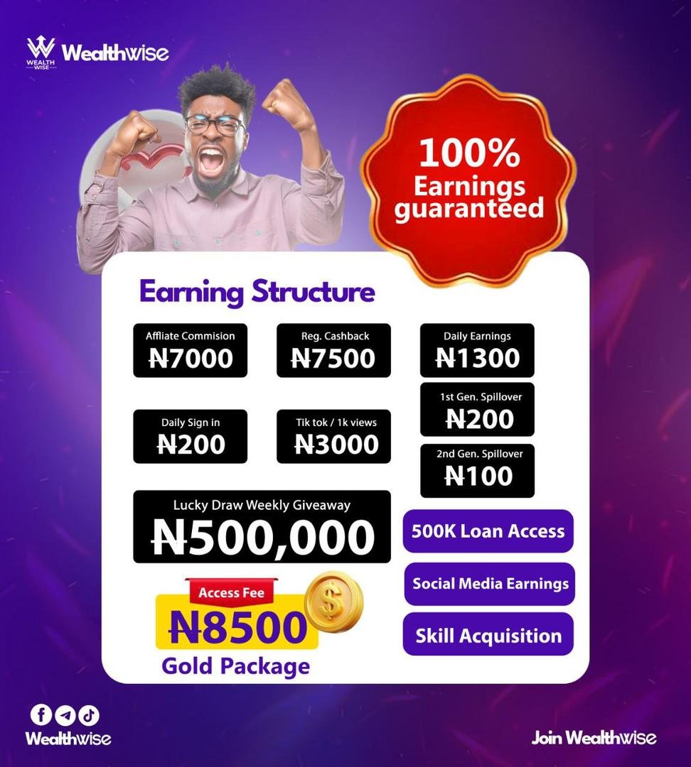 If your are going for the GOLD package .. \r\n\r\nThe registration fee is just 8500 naira \r\n\r\nYou get an instant cash back of 7500 naira\r\n\r\nYou earn total of 1500 naira daily \r\n\r\nWhen you invite someone to the platform you earn 7000 naira from your first downline \r\n\r\nAnd also earn 200 naira from your second downline \r\n\r\nYou also hv access to other things which are well explained in the flier … \r\n\r\nMESSAGE OUR VERIFIED VENDOR FOR REGISTRATION CODES